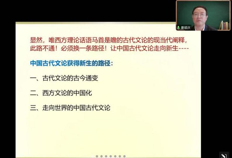 进行讲座。本次讲座主题为“中国古代文论的当代阐释:向死而生之路”,以腾讯会议形式开展,由刘占祥院长主持。