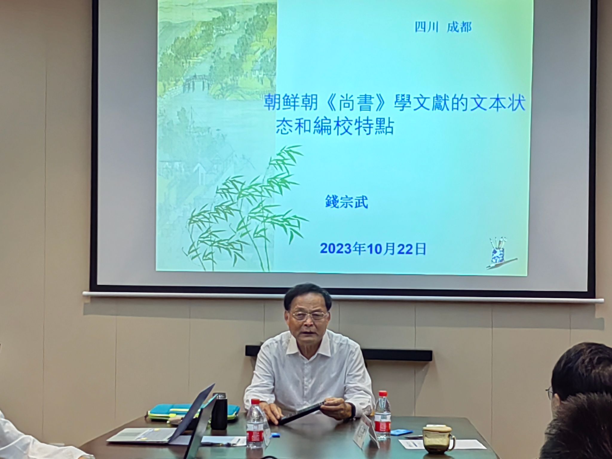 报告之后,周阳老师及部分博士研究生与钱教授就“敦煌文献与李氏朝鲜朝《尚书》学文献的创作群体差异”“古文献异体字之争”“如何确定善本”“域外文献对本土文献的冲击”等话题进行求教交流。刘玉珺老师针对钱教授的报告,结合自身学术实践,从域外汉籍研究的角度对此次讲座做了总结。
