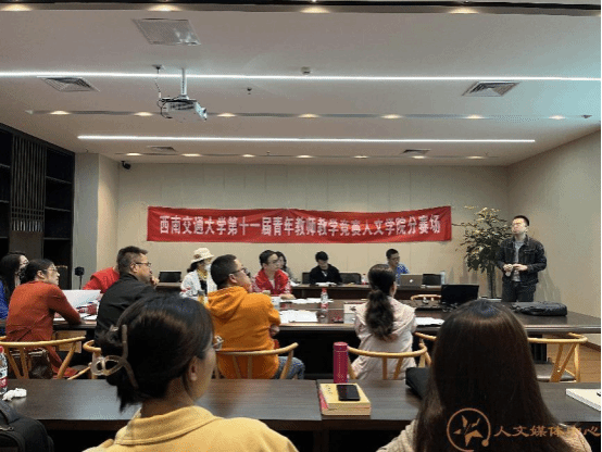 本次竞赛内容为课堂教学,每位参赛教师主讲参赛课程的自选节段。在X31022会议室,10位教师先后进行教学展示。哲学所的吴杨老师,从道家思想产生的社会背景及其发展阶段、道家向“黄老”之学的转变、神仙的特点和神仙信仰的起源、神仙信仰的演变及其与道家思想的合流四个方面进行了细致的讲授。音乐系的刘柳老师通过钢琴演奏向评委们展示了维也纳古典时期不同音乐家的音乐风格。紧接着,赵川老师为大家讲解蜀文化的源流及其与巴文化的关系,他通过介绍宝墩文化、三星堆文化、十二桥文化、上汪家拐遗存的考古发掘,阐释了巴文化与蜀文化之间的异同。之后上场的王雨柠老师为大家讲解了唱歌时的呼吸方法。