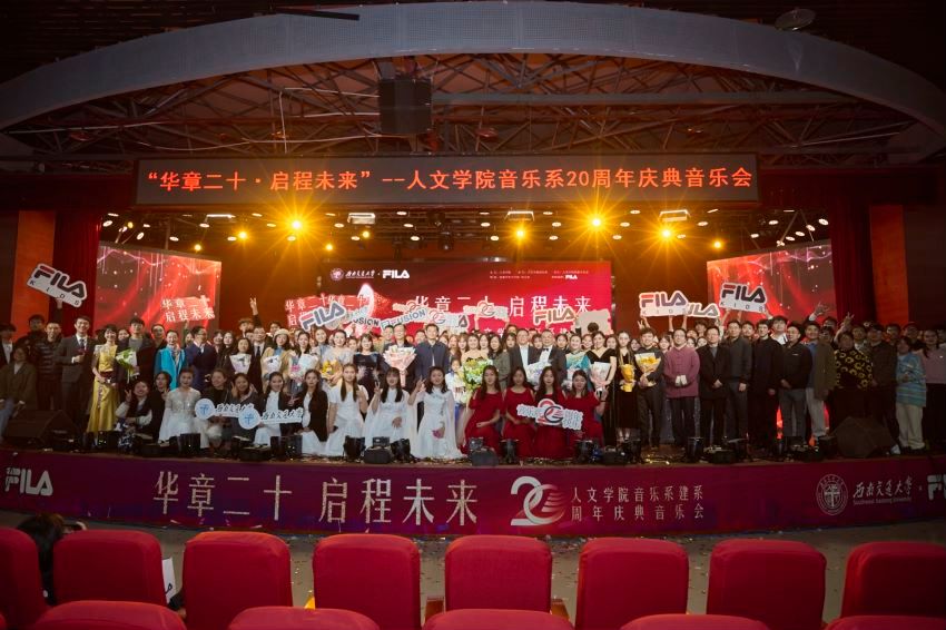 音乐系20周年庆典音乐会在犀浦校区大学生活动中心成功举行。现场嘉宾有校党委副书记杨爱华、色小说