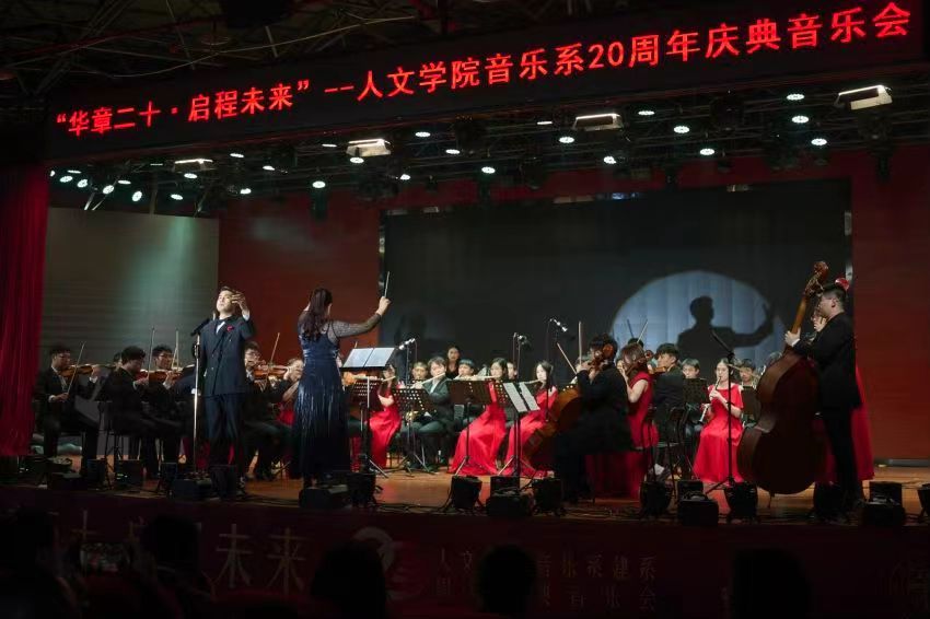音乐会伊始,主持人向我们介绍了音乐系的建系历程和成果,让我们看到,音乐系建系20年来培养了众多优秀的音乐人才。接着刘占祥院长发表开场致辞,用三个词“感谢”“感恩”“感想”表达对音乐系老师的感谢、对校领导的感恩、对音乐系的祝福,并宣布本次音乐会正式开始。