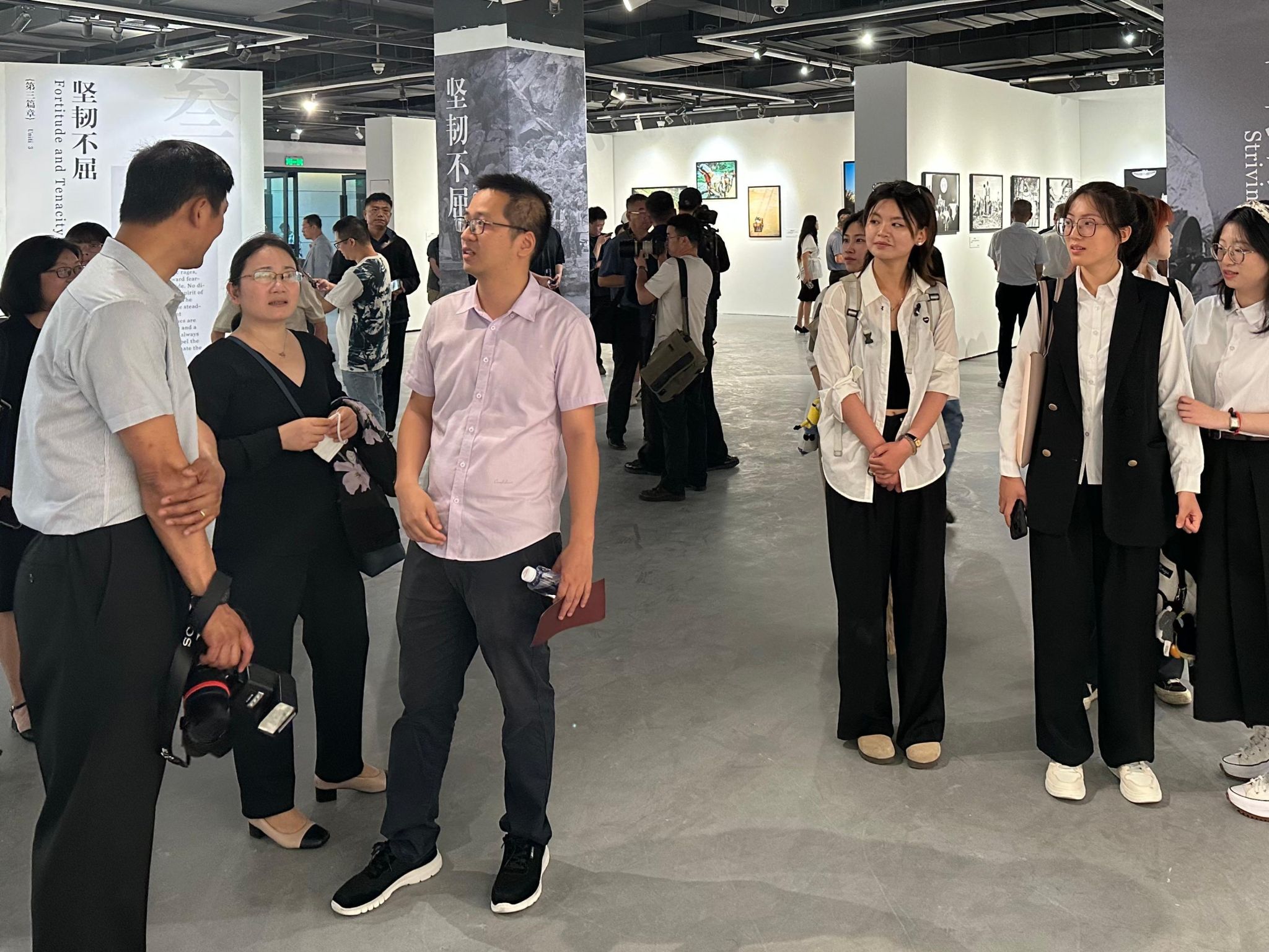 师生认真观摩了展览中精选的60余幅(组)历史影像及16幅(组)新时代主题作品。在观展过程中,传播系师生与新华社摄影记者就新闻摄影的选题视角、影像语言创新及媒体融合发展等议题展开了深入探讨。