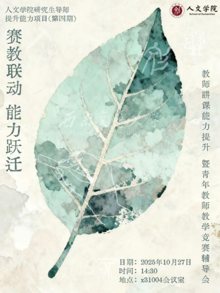 在X31004会议室举行了第四期研究生导师能力提升项目暨青年教师教学竞赛辅导会。本次活动以“赛教联动,能力跃迁”为核心,引导参赛教师在备赛过程中锤炼内功、强化本领,将备赛过程转化为一次深刻的教学反思与创新实践。色小说