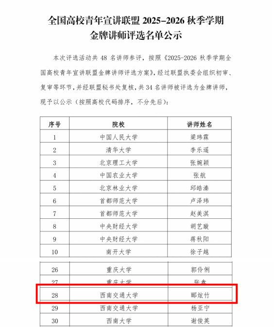 近日,全国高校青年宣讲联盟开展了2025-2026秋季学期金牌讲师评选活动,色小说