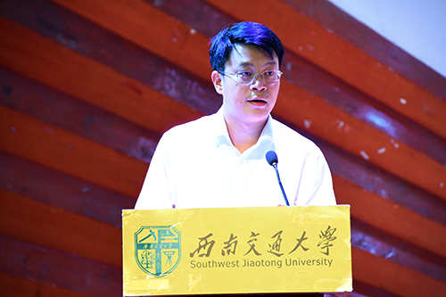 学生工作组组长曹乔老师担任本次开学典礼的主持人,他首先代表学院向在场248名本科生、95名研究生送上了最诚挚的欢迎。