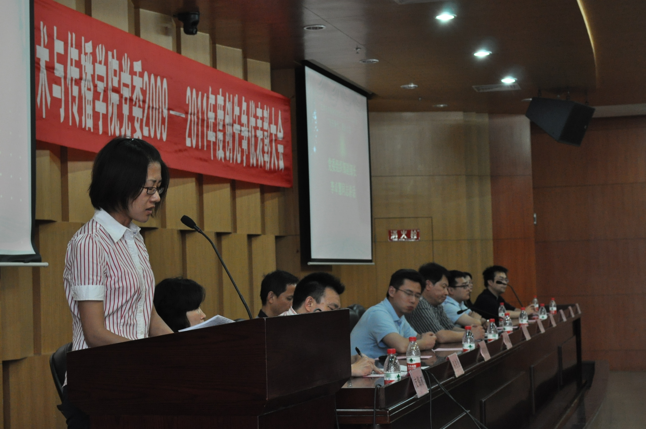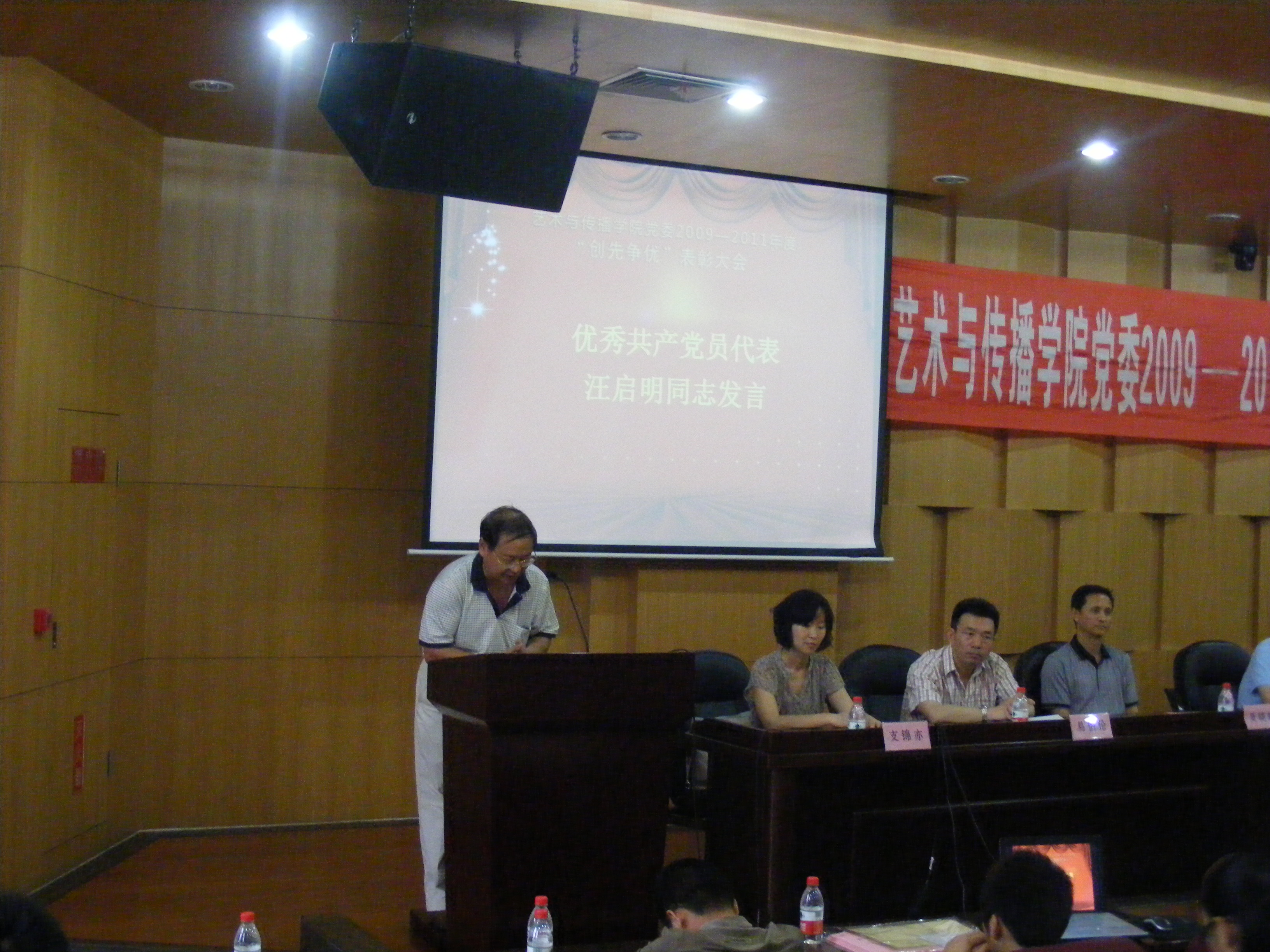 在奏完雄壮激昂的国歌之后,艺术与传播学院党委副书记吴晓雄同志宣读了表彰决定:授予学院机关党支部等7个党支部“先进党支部”称号,授予汪启明等46名同志“优秀共产党员”称号,授予杨自力等2名同志“优秀党务工作者”称号,并号召全院各基层党支部和广大党员同志向先进学习,向优秀看齐,同时希望此次受到表彰的优秀个人、先进集体戒骄戒躁、再接再厉,争取更大成绩,为学院的科学发展再立新功。
