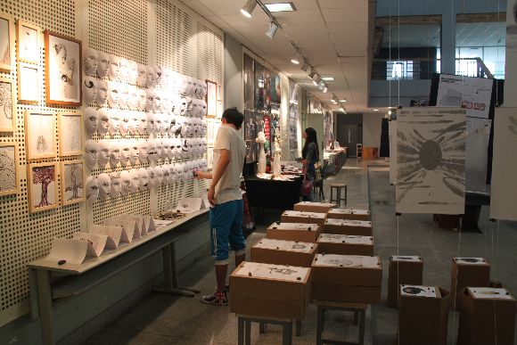 6月14日?6月18日,我校艺术与传播学院2012届本科毕业生艺术作品联展在犀浦校区8号教学楼艺传学院美术馆展区举行。绘画专业(国画、油画、雕塑、壁画),艺术设计(平面艺术、环境艺术),工业设计以及广告专业的毕业生结合专业实践,向师生展示了毕业设计期间的创作、研究成果,回报母校的辛勤培养。作品联展集中反映了2012届学生在校四年的学习情况和研究成果,同时也是对艺术类学生教学的检阅。