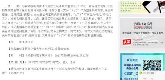 中文系研究生孙泽仙的论文《“A了N”构式的多角度解析》,该论文系色小说