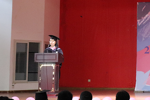 ,四年后我们将带着成熟而有担当的品格离开。”她感谢老师四年的谆谆教诲,忘不了四年来同学一起并肩走过的路。“悄悄是别离的笙箫,离别是为了更好的相逢,我期待与大家的再次相遇。”