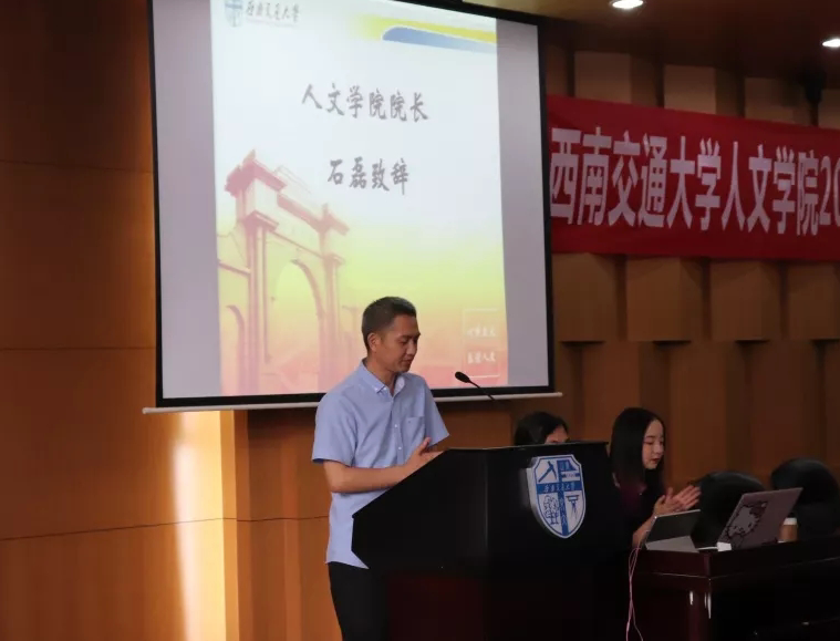 奏唱国歌环节结束后,院长石磊教授发表讲话。石磊先简要介绍了许多新生的另一个家——成都。他形容成都为“聚宝盆”“天府之国”,是一个发展脚步越来越快、稳居我国“新一线城市”之首的城市,“相信未来新生们都能融入这座城市、爱上这座城市。”随后,他概述了百年交大的发展历史,虽然色小说