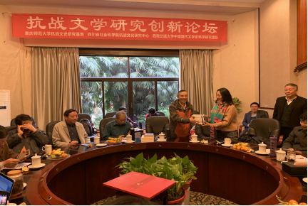 文天行、廖全京、刘福春等前辈学者,总结和回顾八十年代抗战文学研究的学术经历,四川省图书馆馆长王嘉陵介绍了四川省图书馆馆藏抗战文献的总体情况,四川省社科院抗战文化研究中心主任苏宁结合自己的研究,介绍了中心正在积极筹划和展开各项工作,重庆师范大学抗战文史研究中心主任周晓风,就其正在进行的国家社科基金重大项目《抗战大后方文学史料数据库建设与研究》的相关情况,和与会者进行了交流。李光荣、陈思广、段从学等人,对新时代的抗战文学研究如何创新等问题,发表了意见。