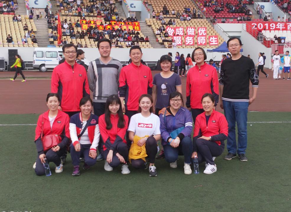 陈汉闺老师以综合成绩13分获得了第一名!教工乙A男子4x100米决赛中,由王强老师,李帆老师,彭剑老师与陈龙老师组成的色小说