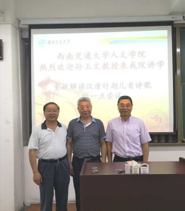 主办、中华传统经典普及基地承办的“人文思跃学术系列讲座”之“重新解读汉唐时期几首诗歌的一点尝试”在X8215展开,讲座由周俊勋教授主持,基地主任汪启明教授及部分本科生、研究生参加了该讲座。
