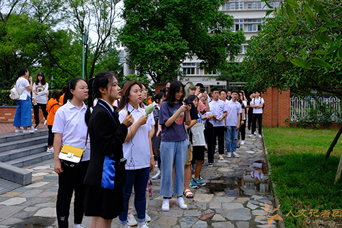 2019级全体新生准时在犀浦校区南门集合,进行游园活动。新生们以班级为单位分为四组,在校园大使团成员的带领下参观校园景观,了解交大历史。