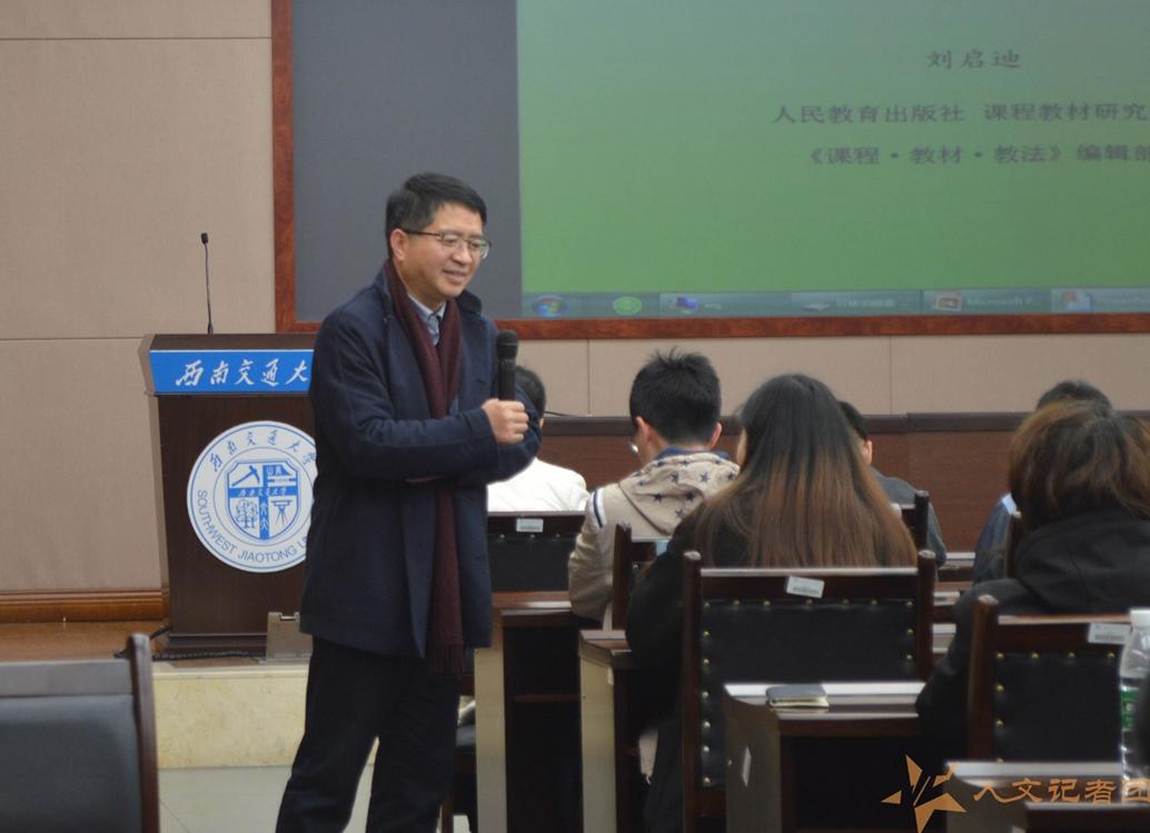 与外国语学院共同承办的“课程改革与人的文化修养”讲座在犀浦校区综合楼148会议室开展。本次讲座邀请到了人民教育出版社主任编辑、《课程·教材·教法》编辑部主任刘启迪老师担任主讲,讲座由色小说