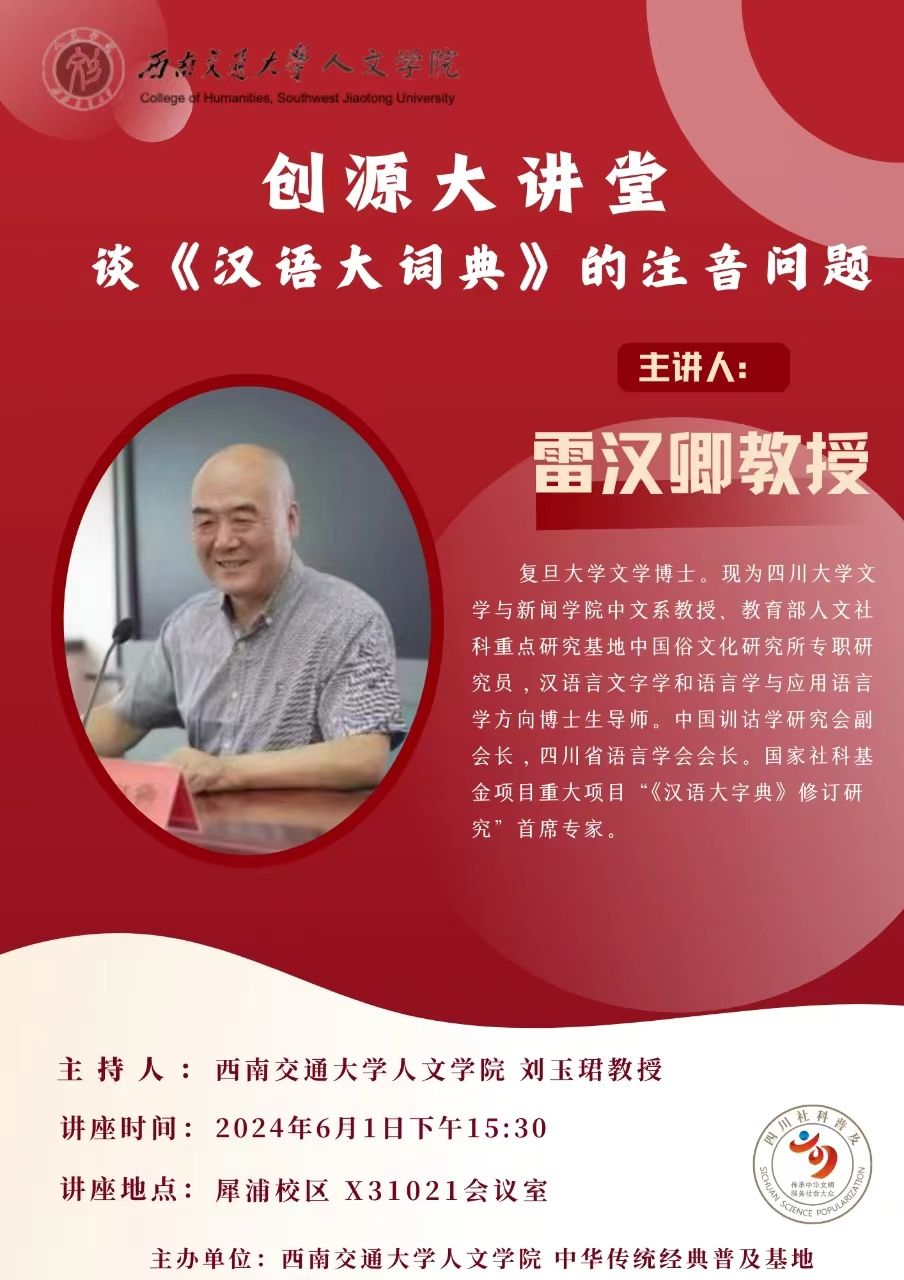 主讲人:四川大学文学与新闻学院 雷汉卿教授