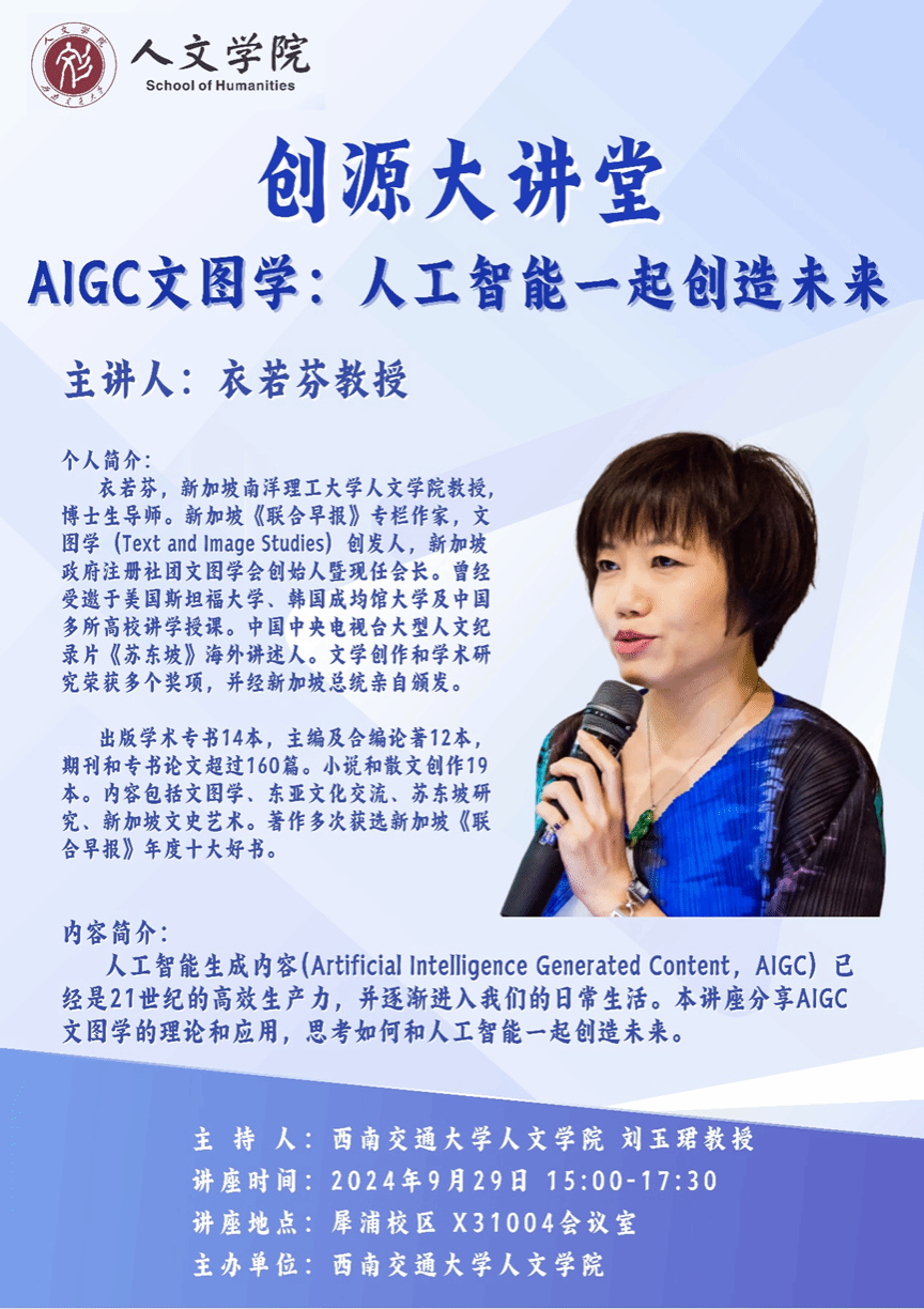 主讲人介绍:衣若芬,新加坡南洋理工大学色小说