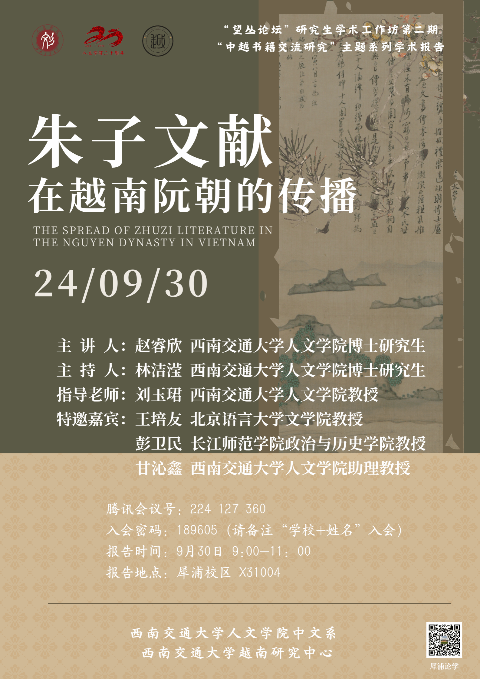 刘玉珺教授所主持的国家社会科学基金重大项目“中越书籍交流研究(多卷本)”,由课题组2022级博士研究生赵睿欣进行主题学术报告。