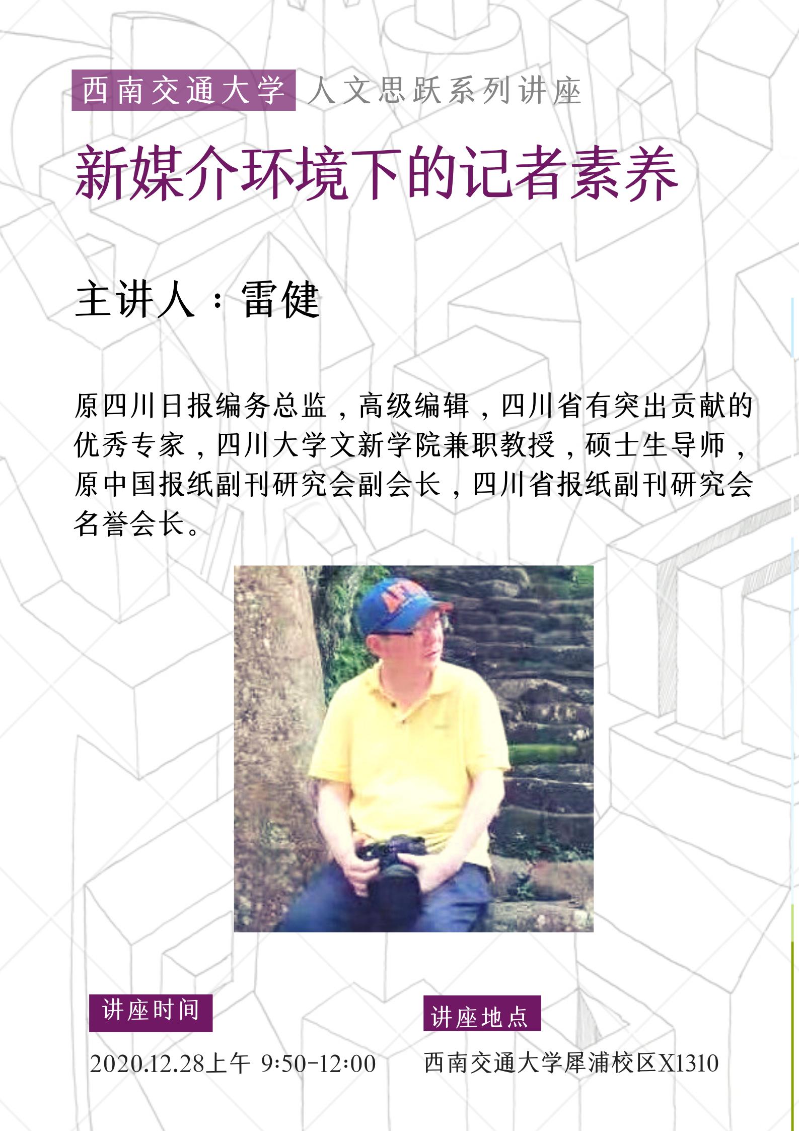 主讲人简介:原四川日报编务总监,高级编辑,四川省有突出贡献的优秀专家,四川大学文新学院兼职教授,硕士生导师,原中国报纸副刊研究会副会长,四川省报纸副刊研究会名誉会长。