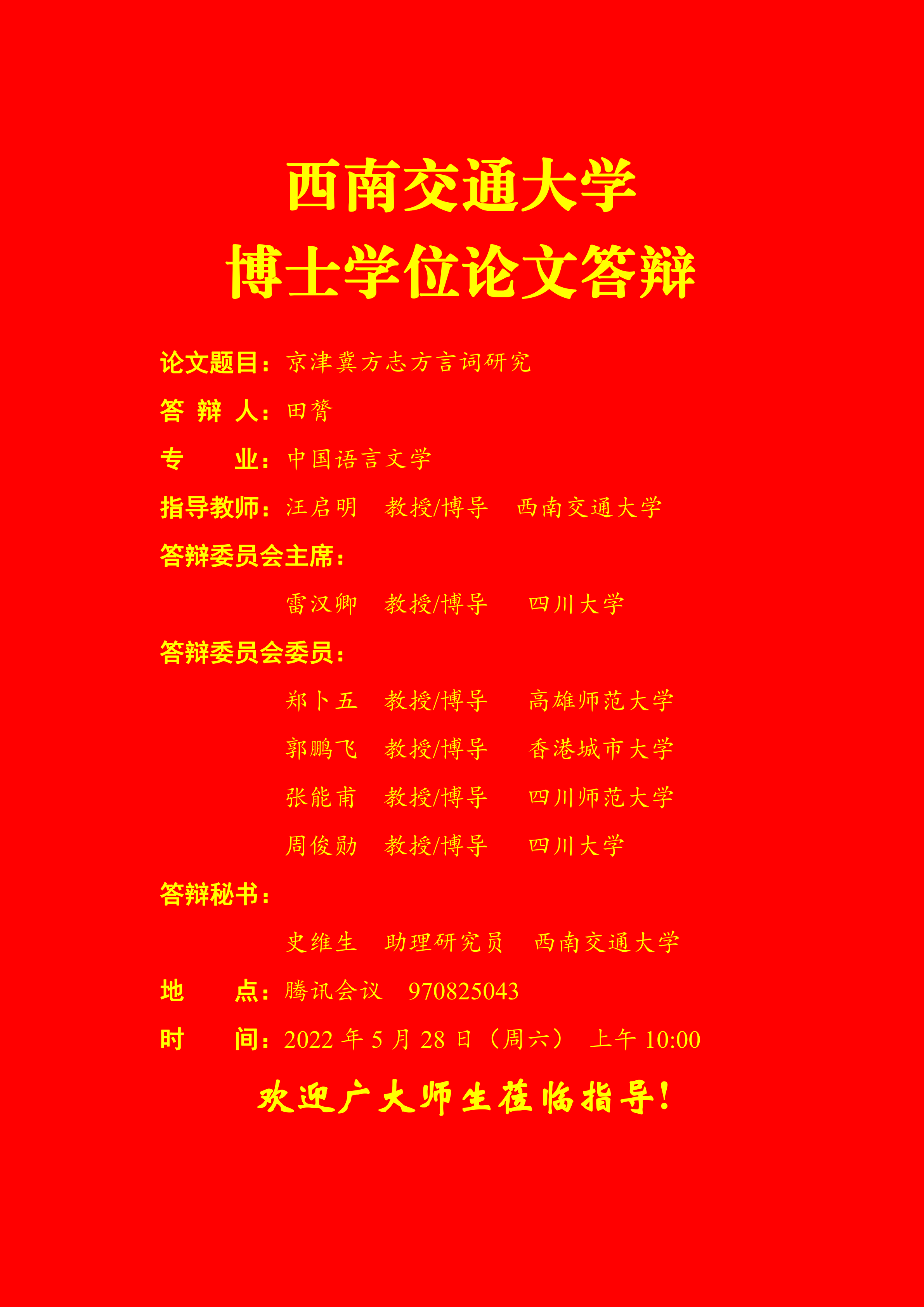 【博士答辩】色小说 博士研究生学位论文答辩海报