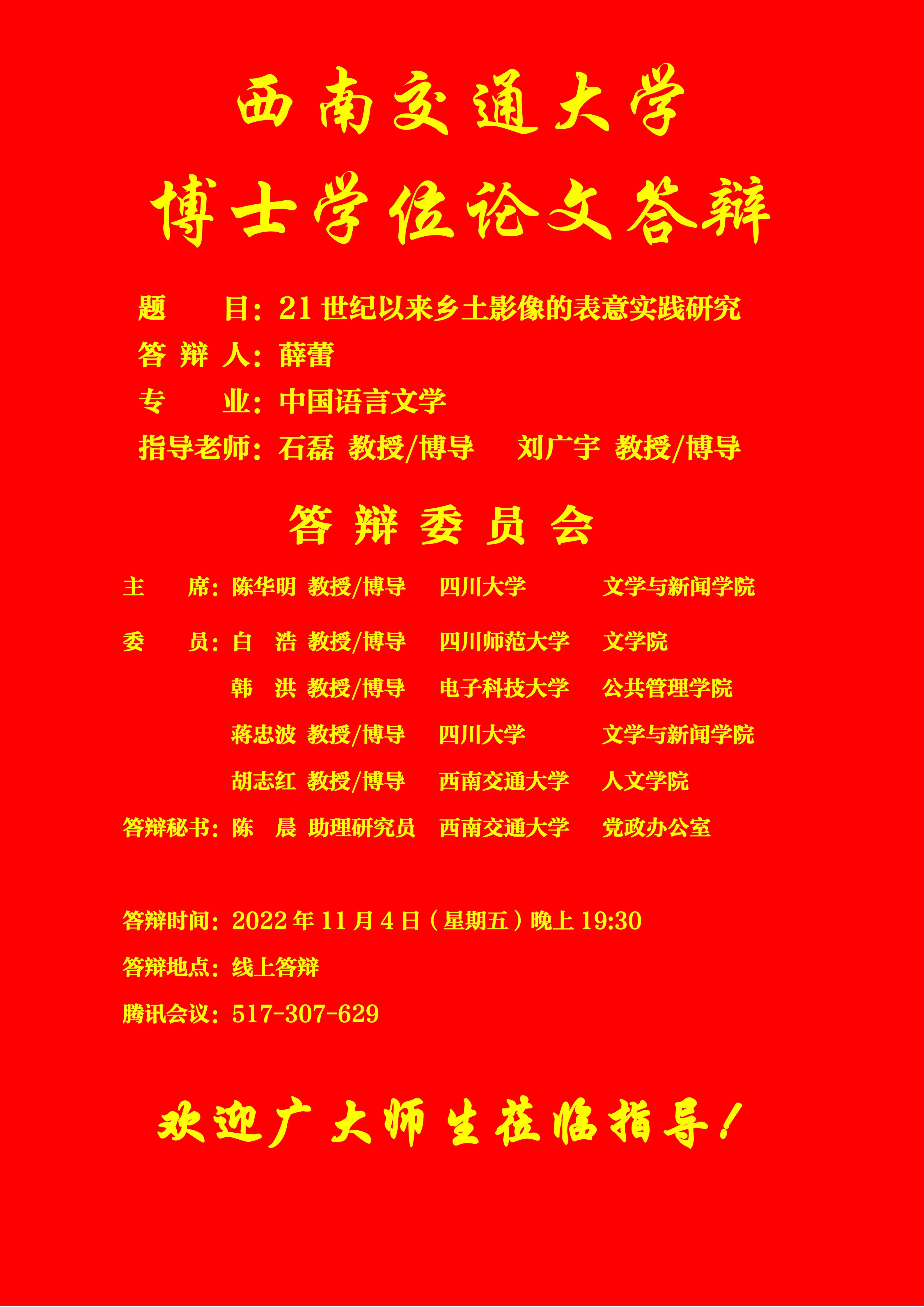【博士答辩】色小说 博士研究生学位论文答辩海报