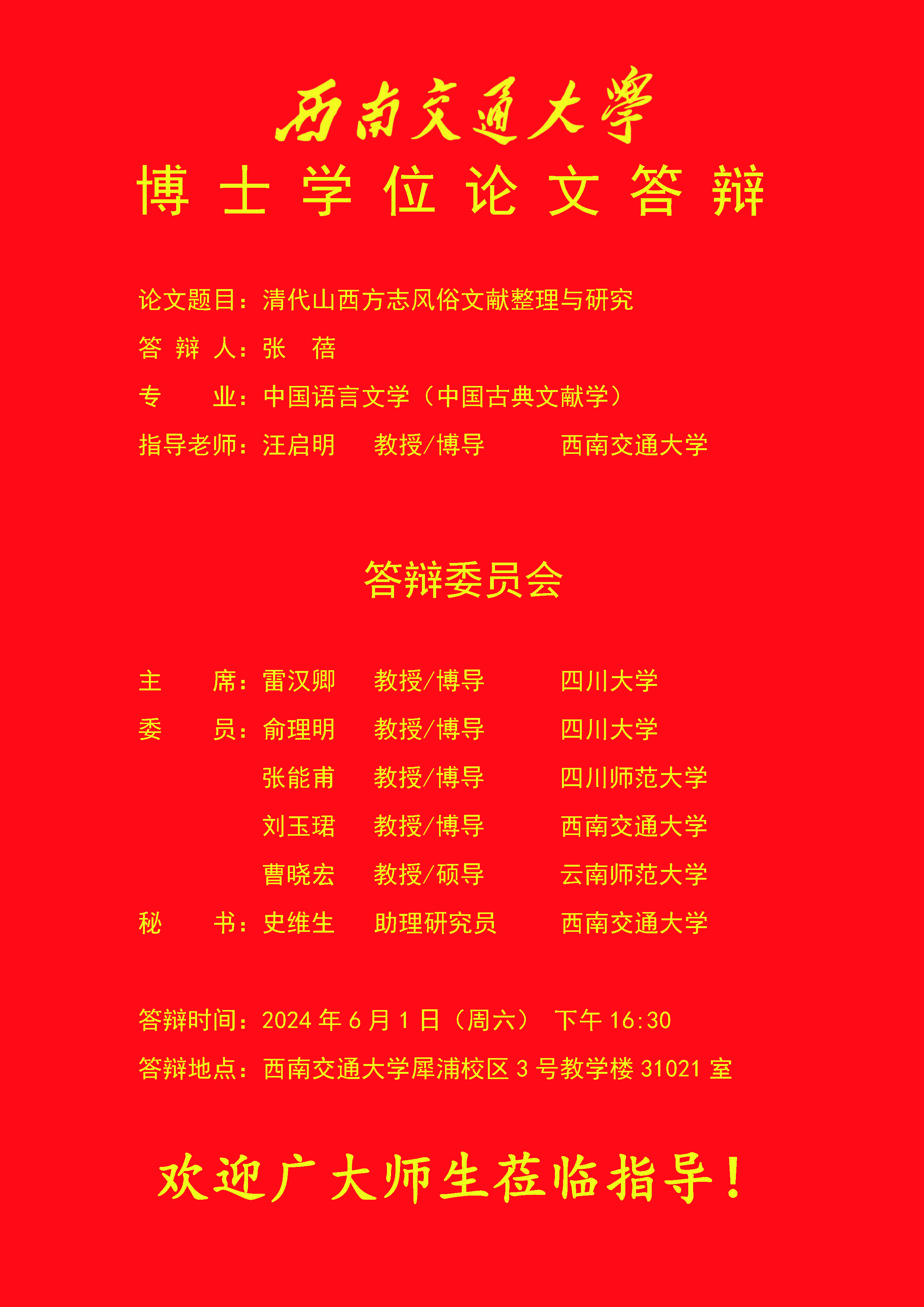 【博士答辩】色小说 博士研究生学位论文答辩海报