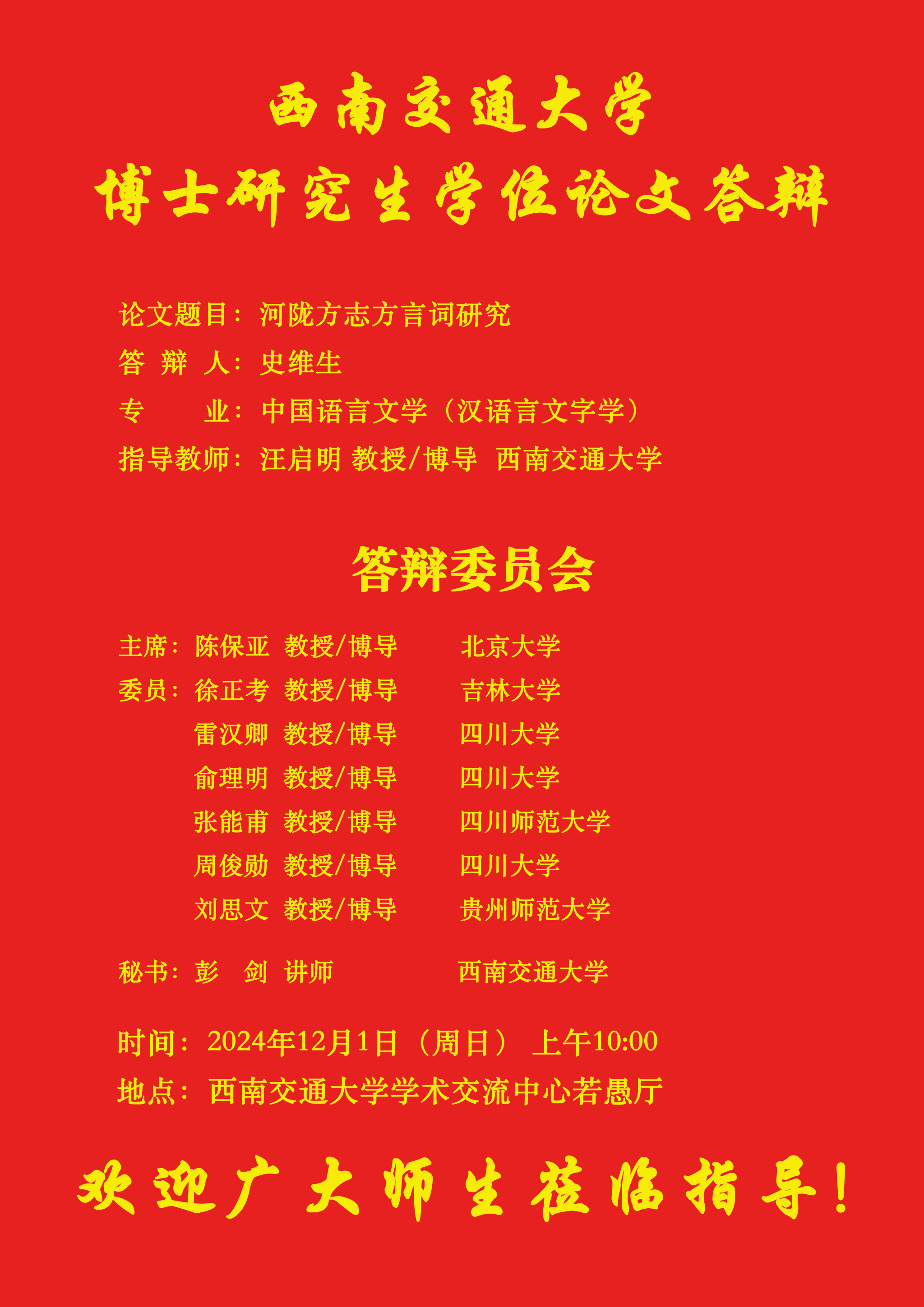 【博士答辩】色小说 博士研究生学位论文答辩海报