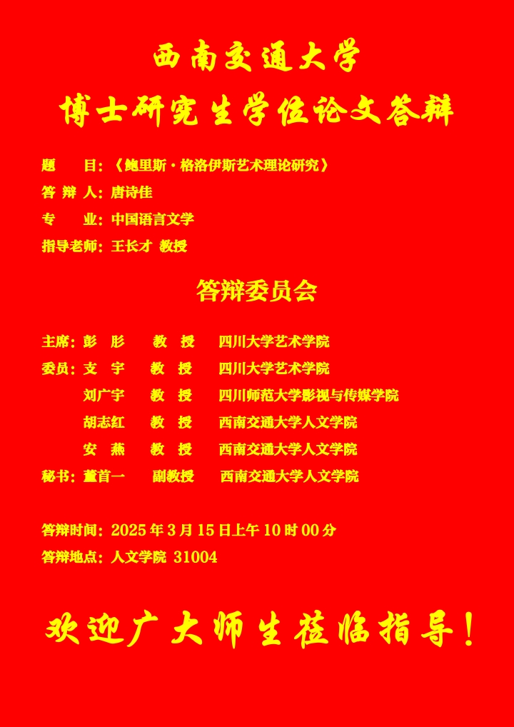 【博士答辩】色小说 博士研究生学位论文答辩海报