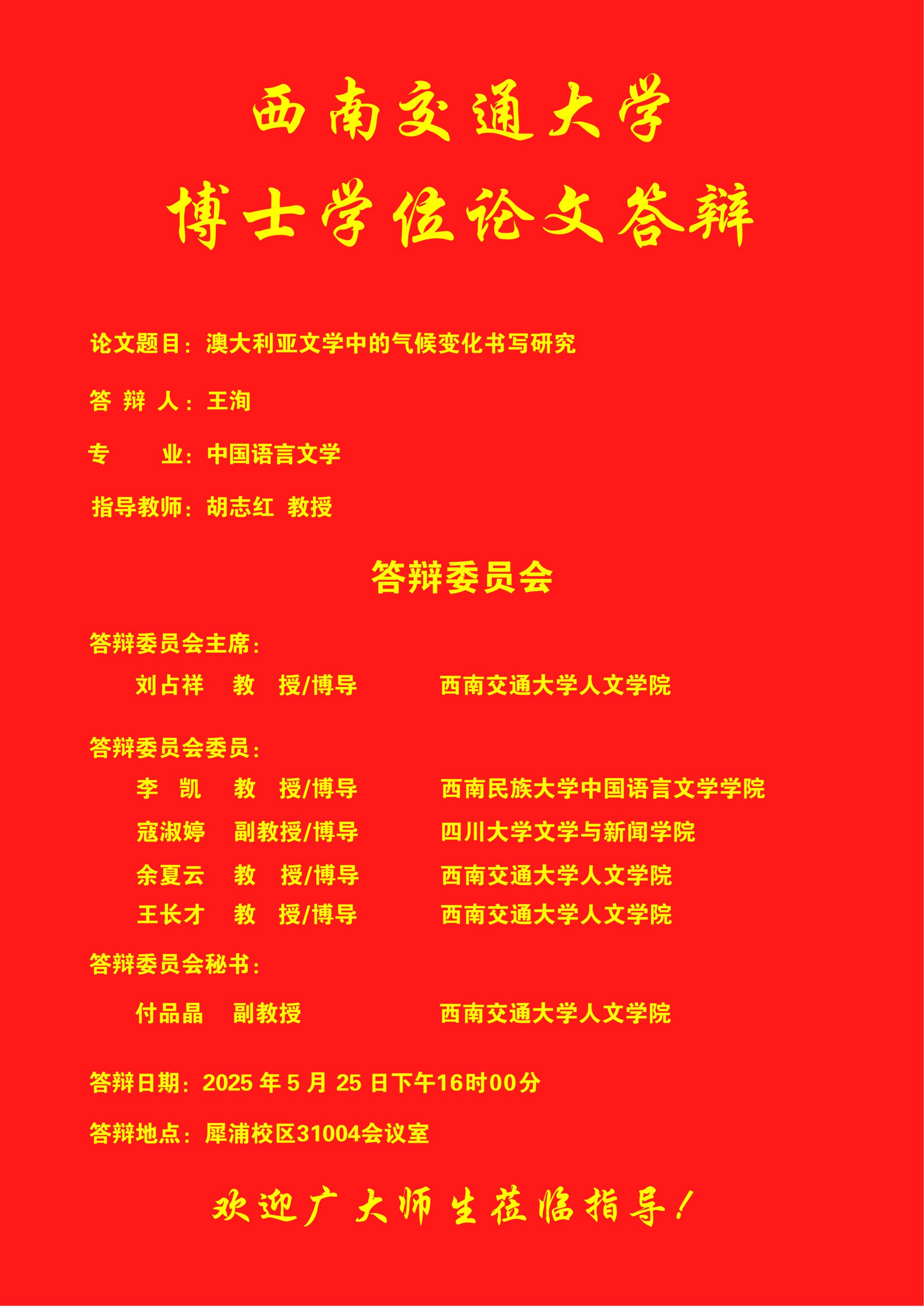 【博士答辩】色小说 博士研究生学位论文答辩海报