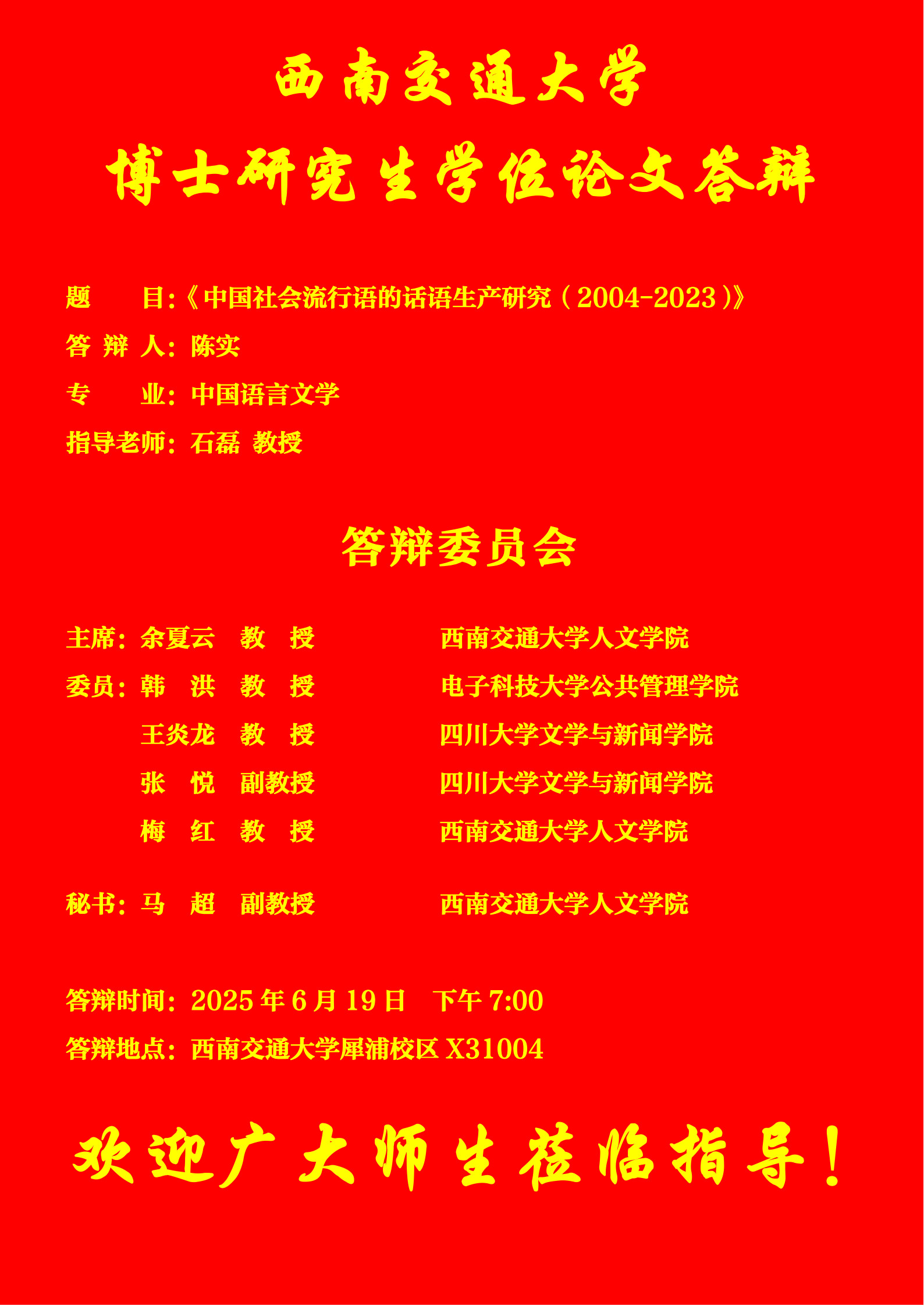 【博士答辩】色小说 博士研究生学位论文答辩海报