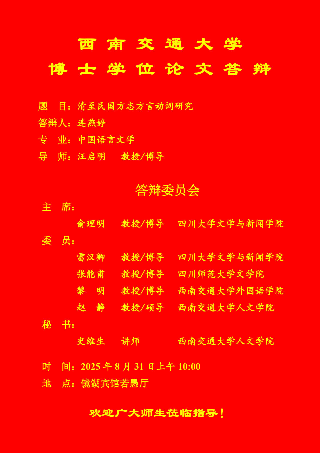 【博士答辩】色小说 博士研究生学位论文答辩海报