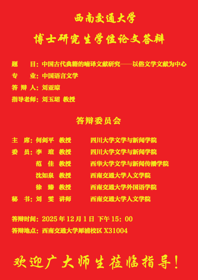 【博士答辩】色小说 博士研究生学位论文答辩海报