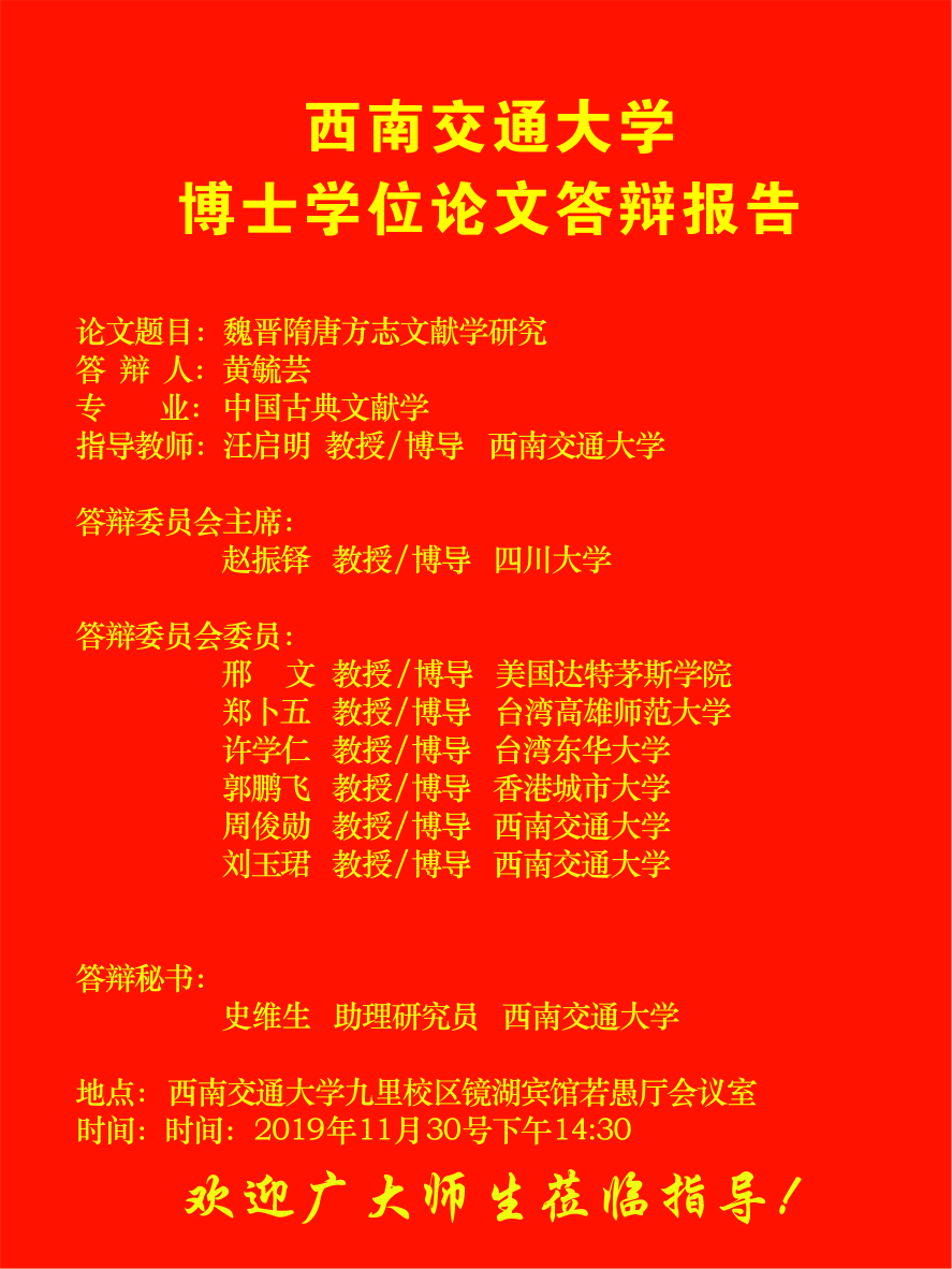 【博士答辩】色小说 博士研究生学位论文答辩海报