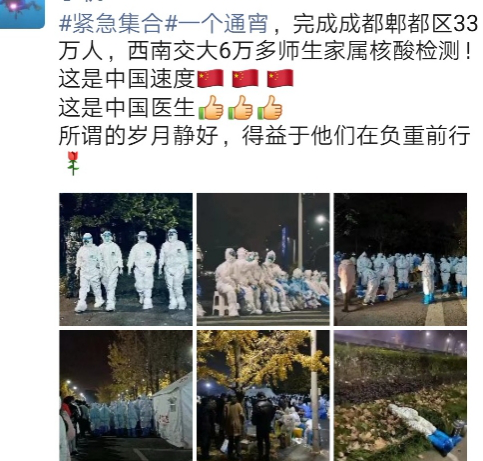 The College of Humanities has a warm heart. We should pay tribute to the medical staff in white, to the teachers and students who did nucleic acid testing in a serious and orderly way that night.