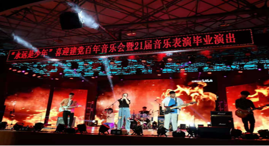 On the evening of June 7, "Always Be Young" was held in Xipu campus of Southwest Jiaotong University to celebrate the 100th anniversary of the founding of the Communist Party of China. There was a warm atmosphere. The guests included Shen Huoming, Deputy Secretary of the Party Committee of Southwest Jiaotong University, Gao Pingping, Minister of the Student Affairs Department of the Party Committee, Zhang Junqi, Secretary of the Youth League Committee of Southwest Jiaotong University, Min Guanghui, Secretary of the Party Committee of the College of Distance and Continuing Education, all leaders of the College of Humanities and all teachers of the music department.