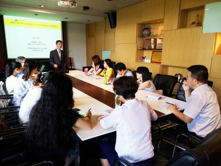走向认知文学研究:记熊沐清教授交大色小说 的专题讲座2016年6月16日(星期四)下午14:30,色小说 “当代文化研究前沿问题系列讲座”之一:认知文学研究在西南交大犀浦校区色小说 会议室X8210顺利举办。