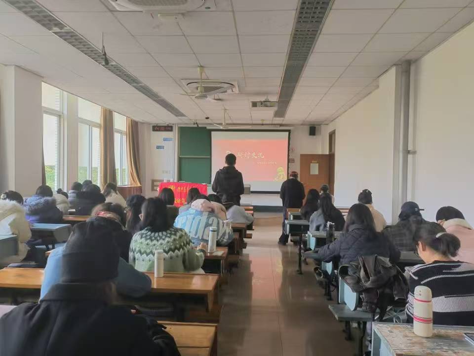 研第一党支部于九里校区J4322教室组织开展12月主题党日活动,围绕《党的二十届四中全会〈建议〉学习辅导百问》进行专题学习。本次活动由满珍明同志主持,研第一党支部全体成员参与。