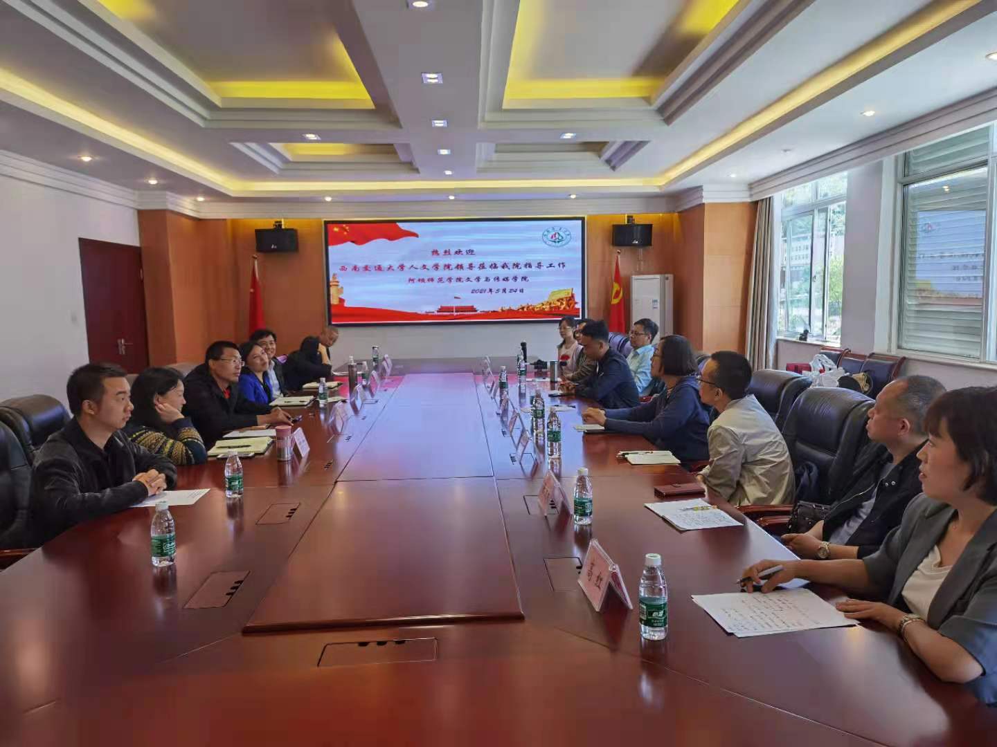 在阿坝师范学院文学与传媒学院,支部就学院灾后重建、党史学习教育、学科专业建设、学生日常管理等,与文学与传媒学院党总支进行了深入交流。